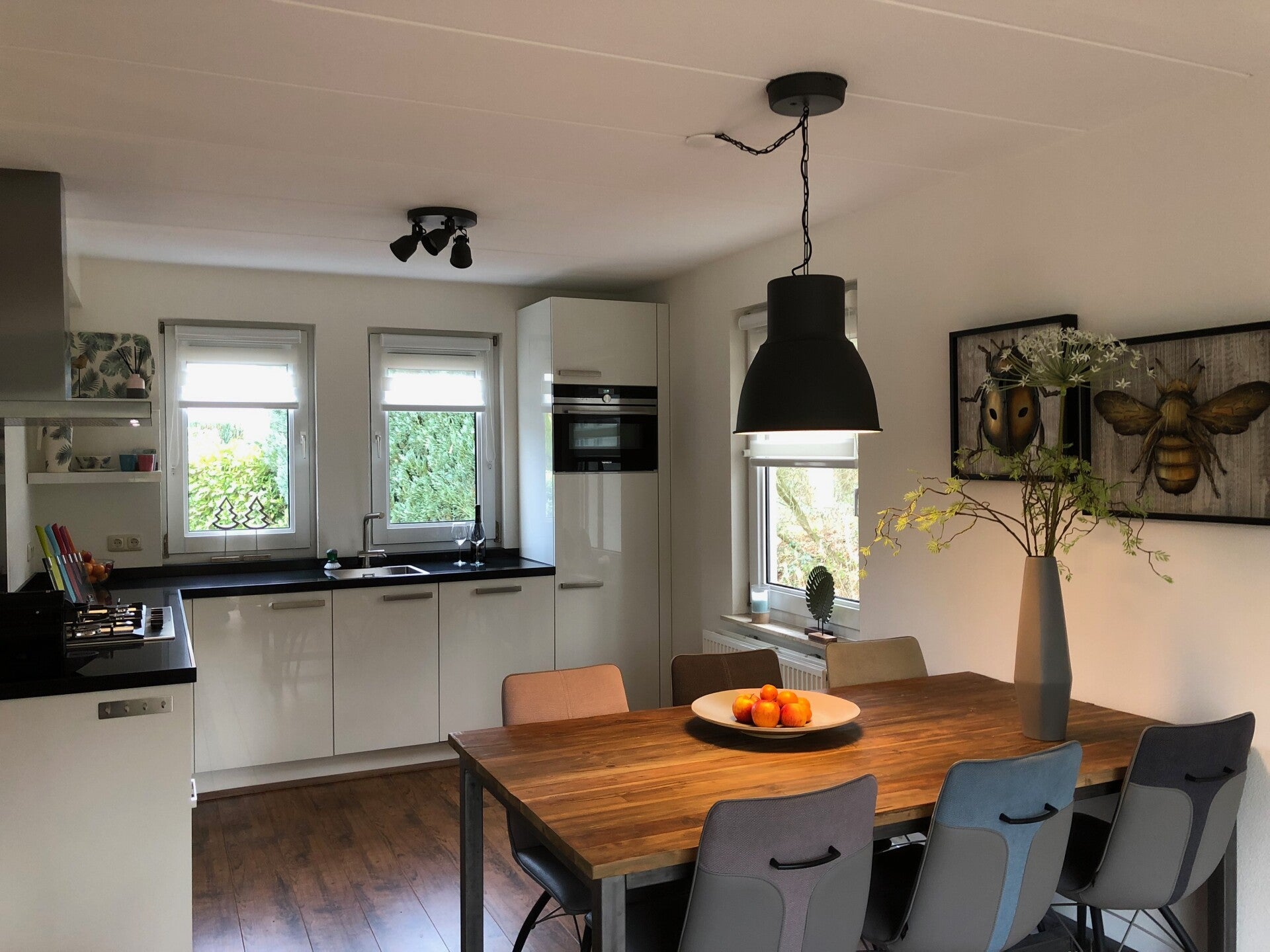 - Luxe inbouwkeuken o.a. met vaatwasser, combi-oven/magnetron, koelkast met vriesvak, gaskookplaat met wokbrander en daarnaast nog diverse handige keukenapparaten zoals airfryer, blender, tosti-apparaat, broodrooster en de